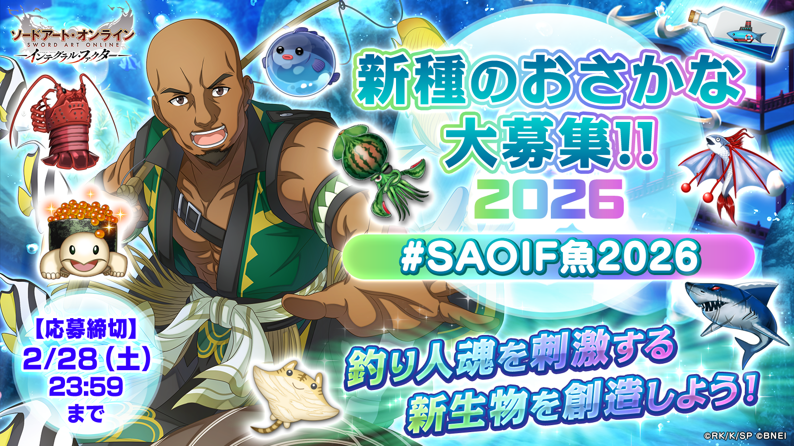 ・株式会社バンダイナムコエンターテインメント(以下、当社といいます)は、『ソードアート・オンライン インテグラル・ファクター』(以下、本サービスといいます)に関連して「SAOIF「新種のおさかな大募集!!2026」キャンペーン」(以下、本キャンペーンといいます)を実施いたします。