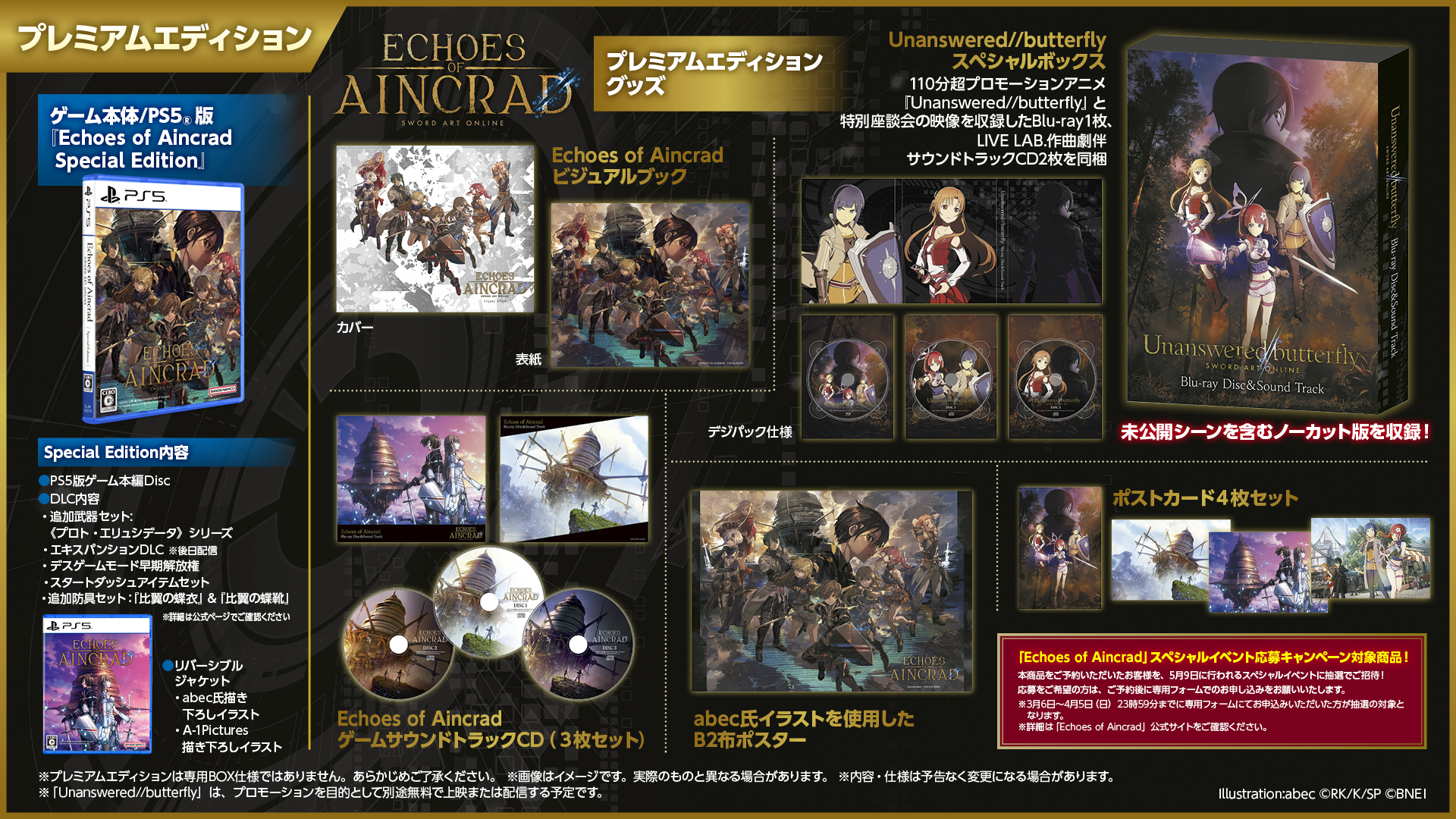 さらに「Unanswered//butterfly」が発売前に映画館で楽しめるスペシャルイベントへの抽選応募権が付属!「Echoes of Aincrad」を堪能し尽くせる豪華版をぜひご予約ください!